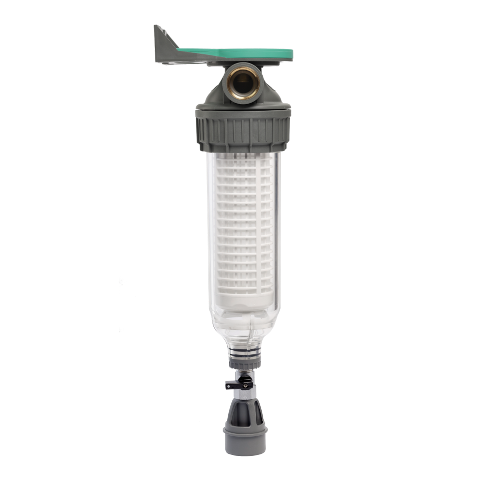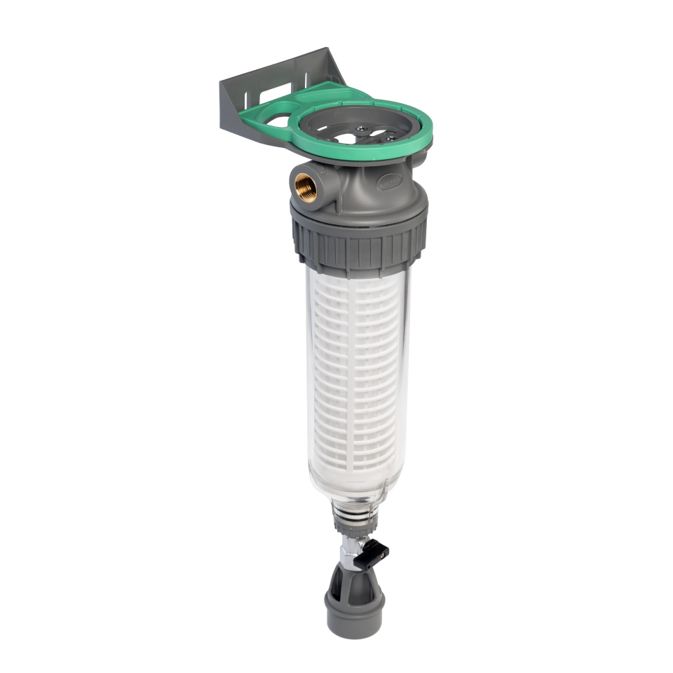 The three-piece design (head-nut-bowl) is intended for water purification in both residential and commercial applications. A key feature of this model is the drain valve. The raindrop-shaped bowl is designed to completely expel all collected sediments. A grid at the bottom of the bowl forms a collection tank, keeping the filter cartridge clean from floating sediments. This ensures maximum filtration efficiency and allows for quick removal of accumulated debris.