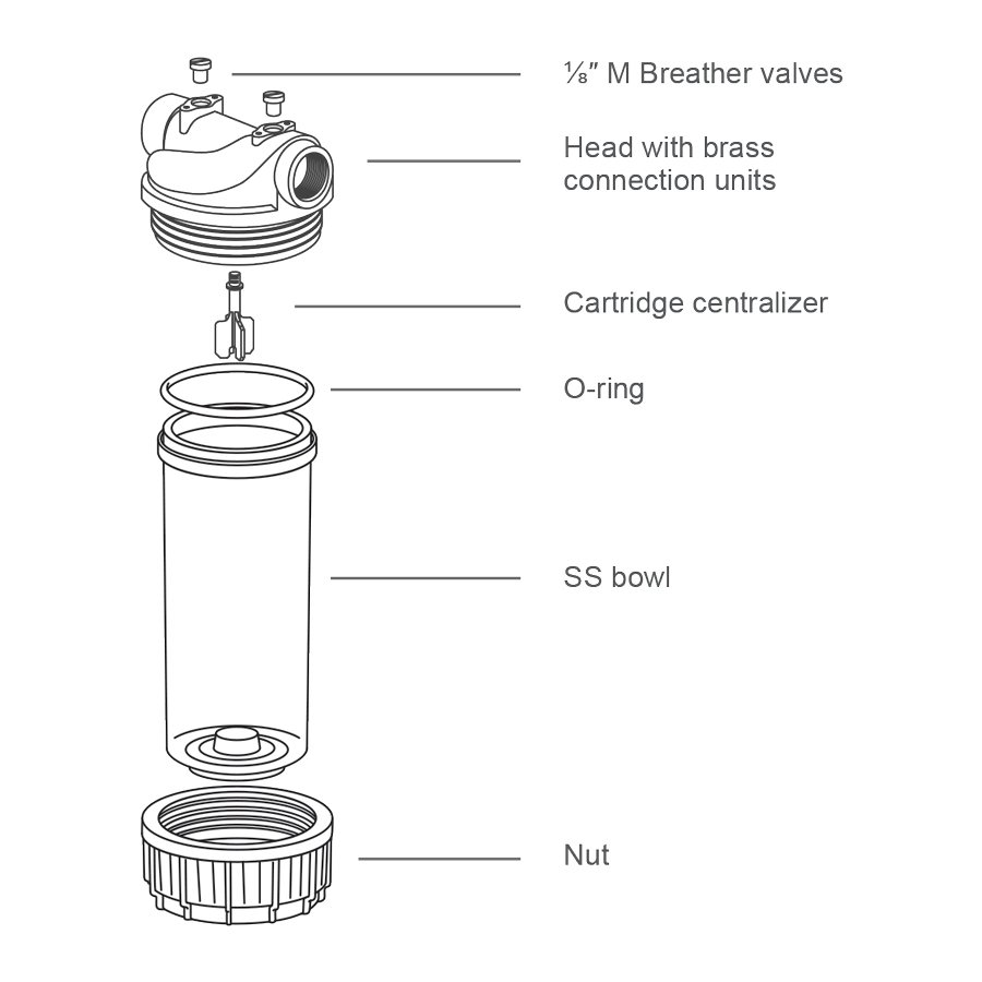 - Package: Empty housing without filter cartridge