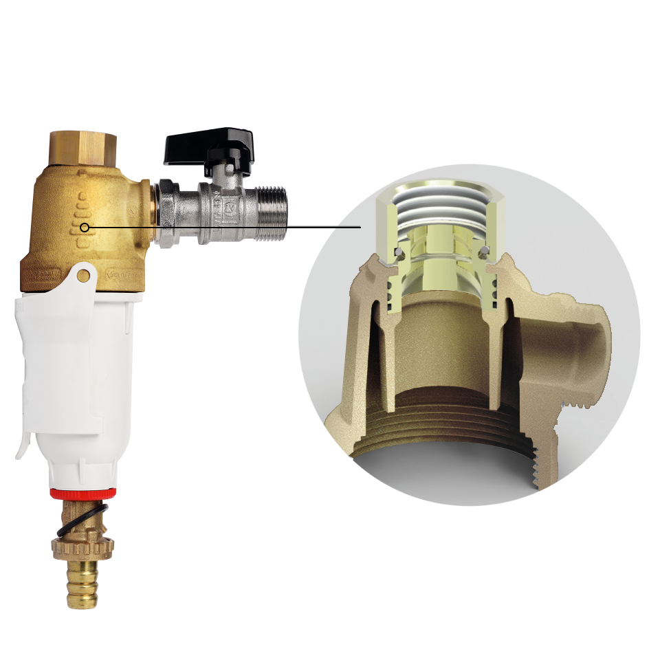 DIMA BRASS sludge filter is specifically designed to protect domestic heating systems and boilers. It is installed on the return circuit feeding after the last radiator. The stainless steel cartridge, combined with robust neodymium magnets, efficiently removes both metallic and non-metallic particles, particularly rust and sand.
