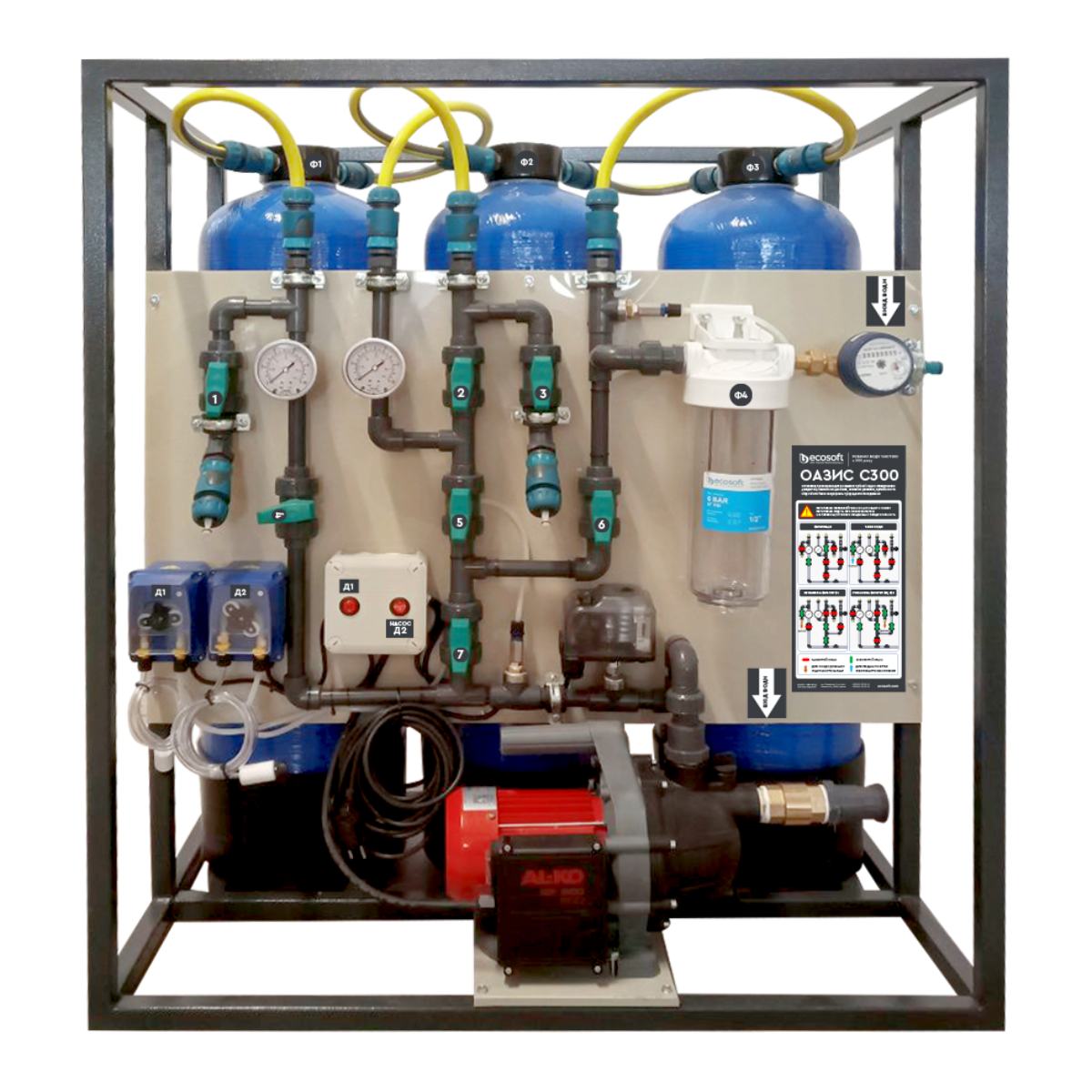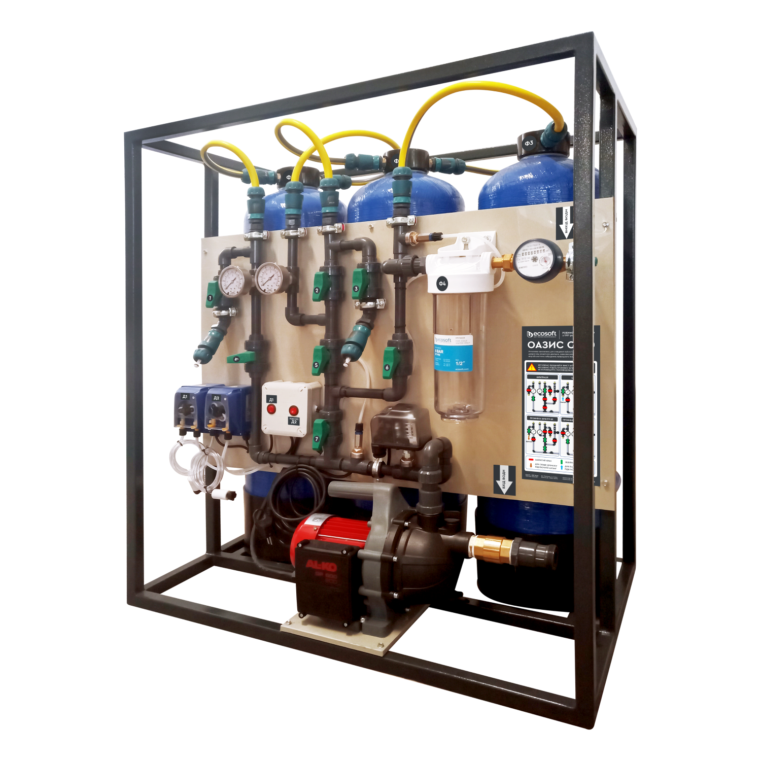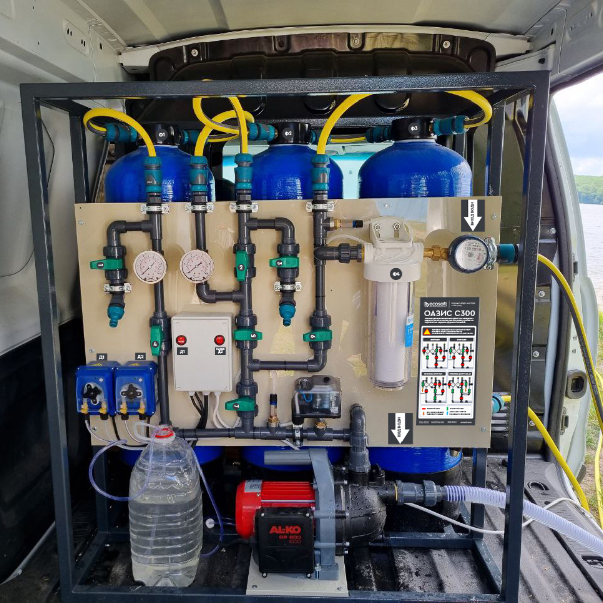 The OASIS-C300 system is designed to purify water from surface sources and wells with low mineralization from microbiological, mechanical and organic contamination. The system is used to provide drinking water to campsites, houses or ranches etc.