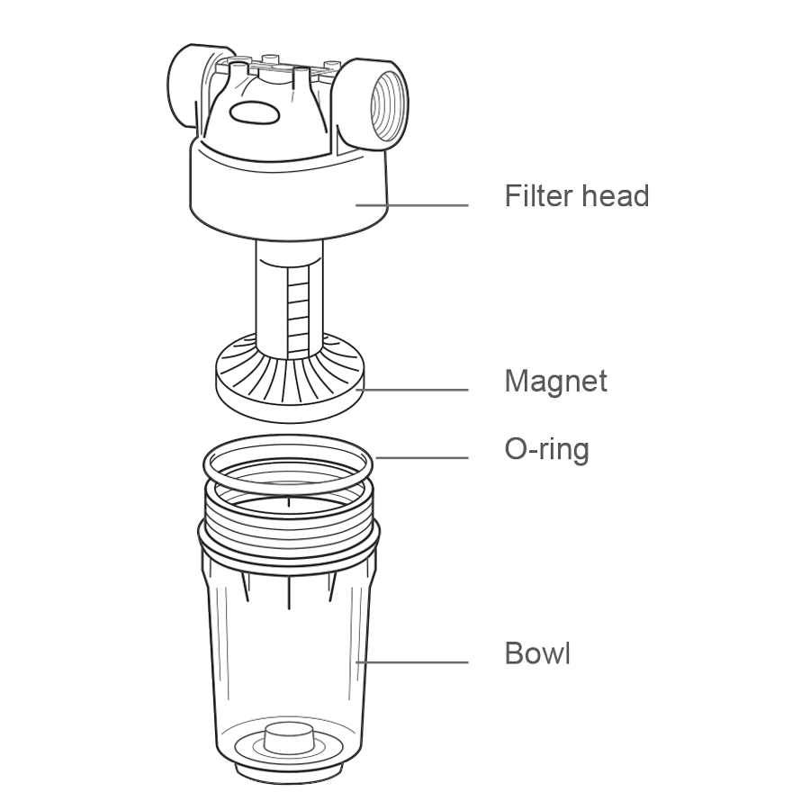- Filter media: Polyphosphate + neodymium magnet