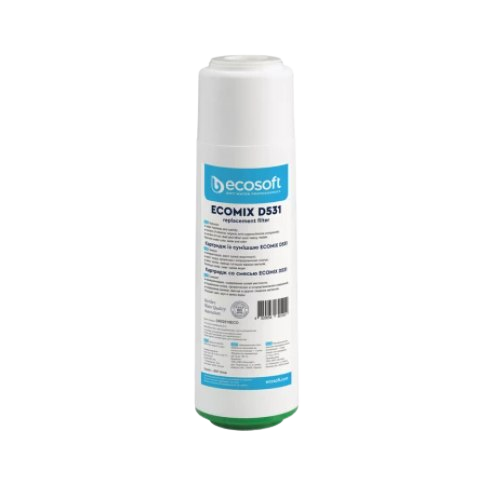 The cartridge reduces hardness, chlorine, iron, manganese, organic impurities, color and odor of water. It is suitable for filters from other manufacturers with a standard size of 2.5 "x10".