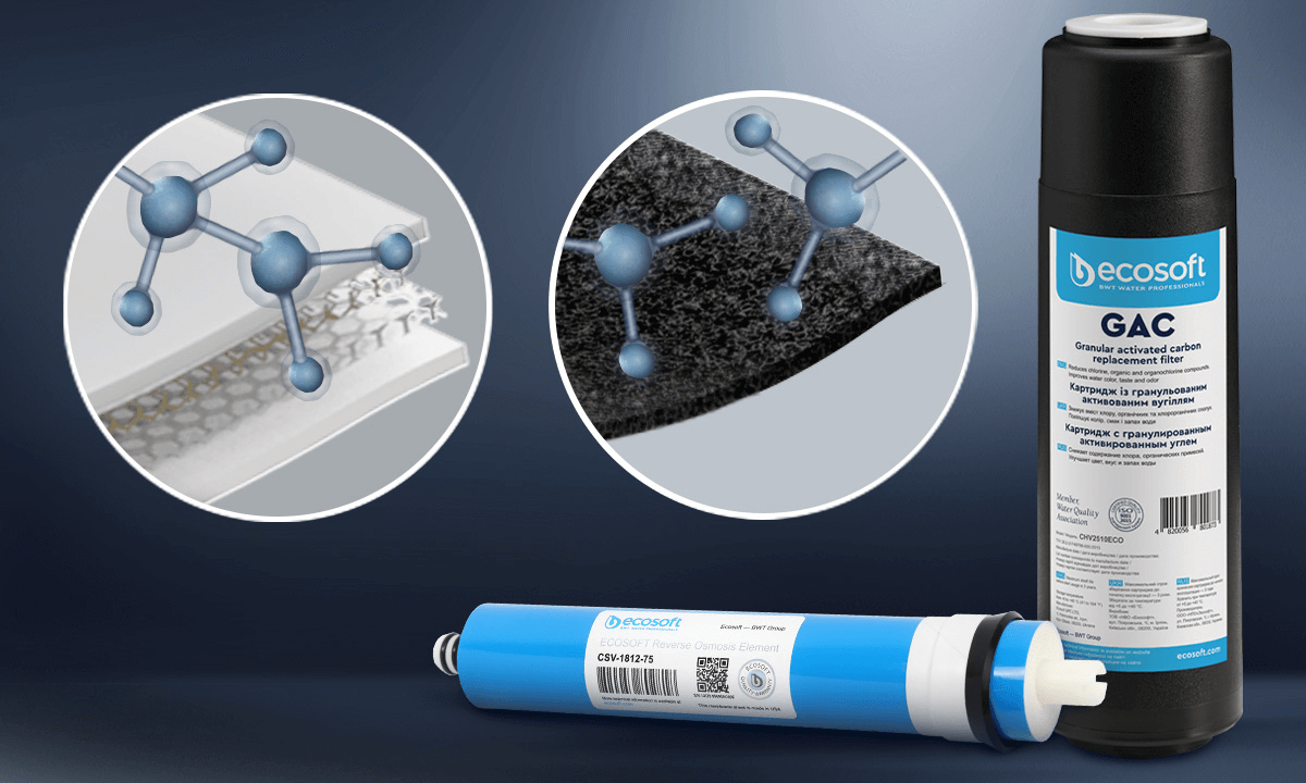 Ecosoft PURE reverse osmosis filters combine innovative technologies with natural processes to deliver consistently mineral-rich, delicious water. Ecosoft PURE Balance system provides an economical and eco-friendly solution for pure, calcium and magnesium-enriched water, reducing PFAS content by up to 99%.